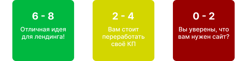 - 6-8 баллов: Зеленый свет. Ваша идея сфокусирована и обладает ключевыми элементами для успешного лендинга. Переходите к плану.